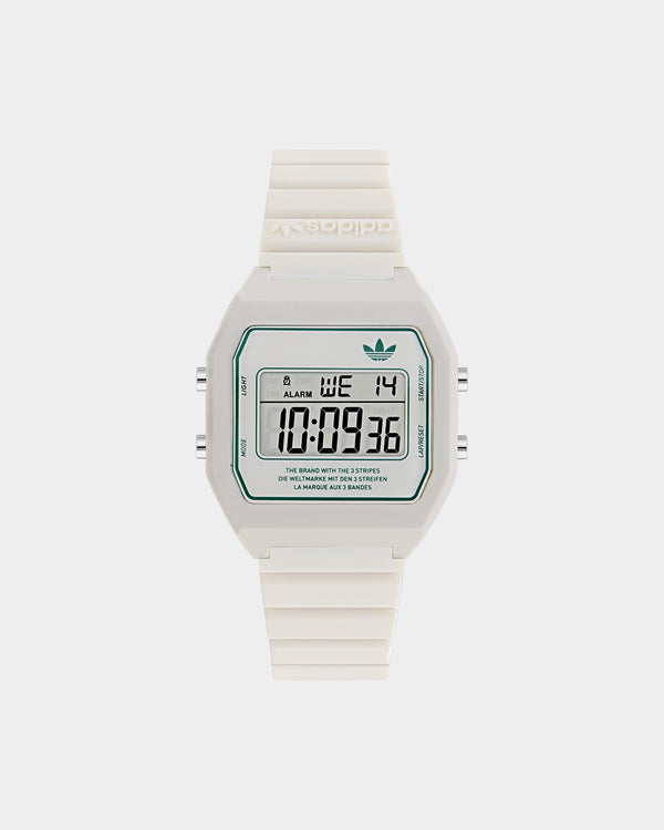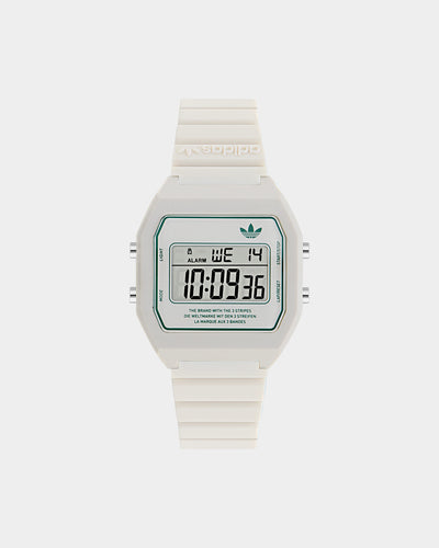 An 80's retro digital vibe coming straight from Adidas originals' rich archive and combined with a modern flair. With a resin strap, the Digital two-watch is a fun accessory with serious timekeeping features including time and date display, alarm, and chronograph functions. Grab yours today at Culture Kings.