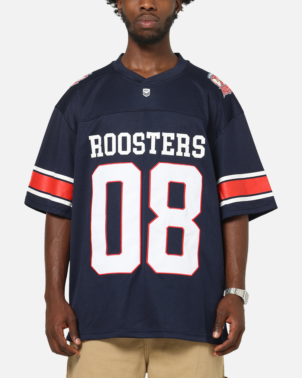 Get a look that goes hard while cheering on your fave team with the Sydney Roosters NRL Gridiron Mesh Jersey. Featuring a mix of printed graphics and embroidered team logos with ribbed v-neck collar and twin needle stitching for all day comfort that is made to last. Finished with dropped shoulders for a laidback look. Choose your team and cop yours today at Culture Kings.