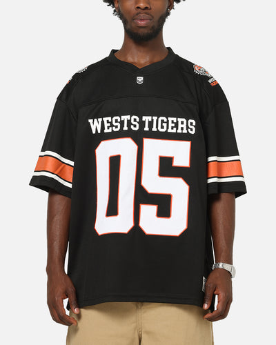 Get a look that goes hard while cheering on your fave team with the Wests Tigers NRL Gridiron Mesh Jersey. Featuring a mix of printed graphics and embroidered team logos with ribbed v-neck collar and twin needle stitching for all day comfort that is made to last. Finished with dropped shoulders for a laidback look. Choose your team and cop yours today at Culture Kings.