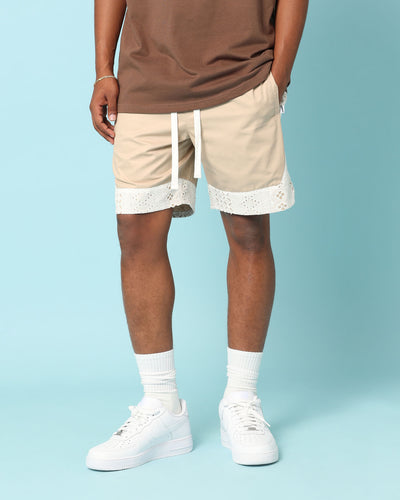 Introducing the Bandana Lace Shorts, a streetwear essential that effortlessly combines fashion and function. Fire lace details and striking embroidered branding add a touch of boldness. The elasticated waist with a tonal adjustable drawstring ensures a tailored fit, while rugged twin-needle stitching guarantees durability. Complete with dual side pockets and a single back pocket for functional flair, this piece redefines street-ready fashion, offering both edge and comfort. Upgrade your wardrobe and cop yours today, while stock lasts.