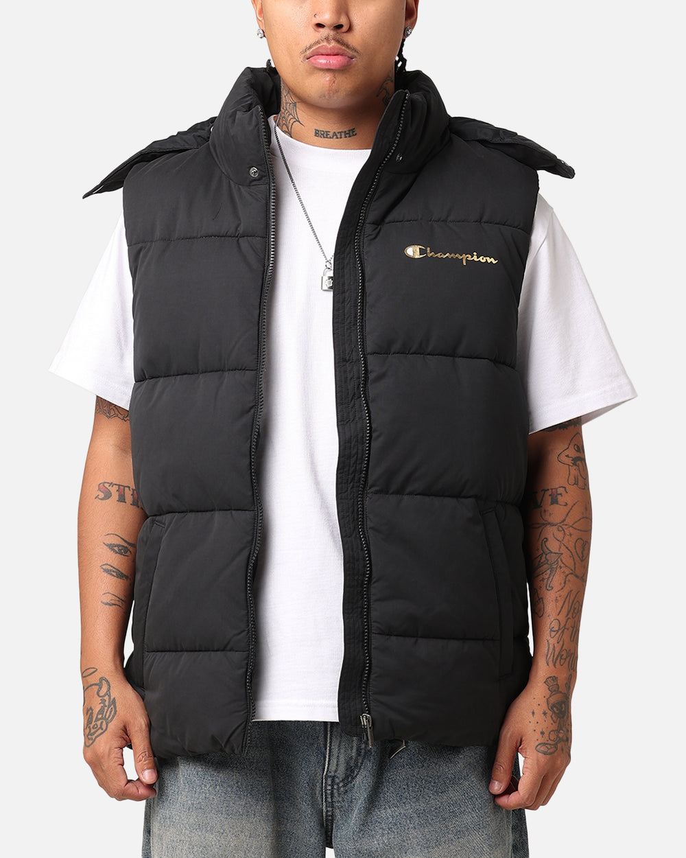 Bring the Heat while the weather cools off with the Rochester Athletic Puffer Vest. With a warm high neckline and hood and five-panel quilted construction, you'll live in this comfortable piece. Featuring printed Champion logo on the chest and the signature embroidered monogram on the sleeve, it won't last long, so cop now!