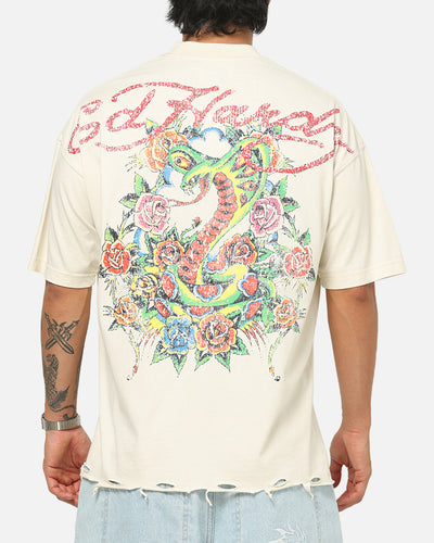 Elevate your casual wardrobe with the Ed Hardy Venom Rose T-Shirt —a bold blend of iconic design and top-notch comfort. This premium cotton tee features striking printed graphics that pay homage to Ed Hardy’s legendary tattoo artistry. Finished with distressed details at the hem and a ribbed crewneck for it to outlast the rest. Make a statement and cop yours today at Culture Kings.