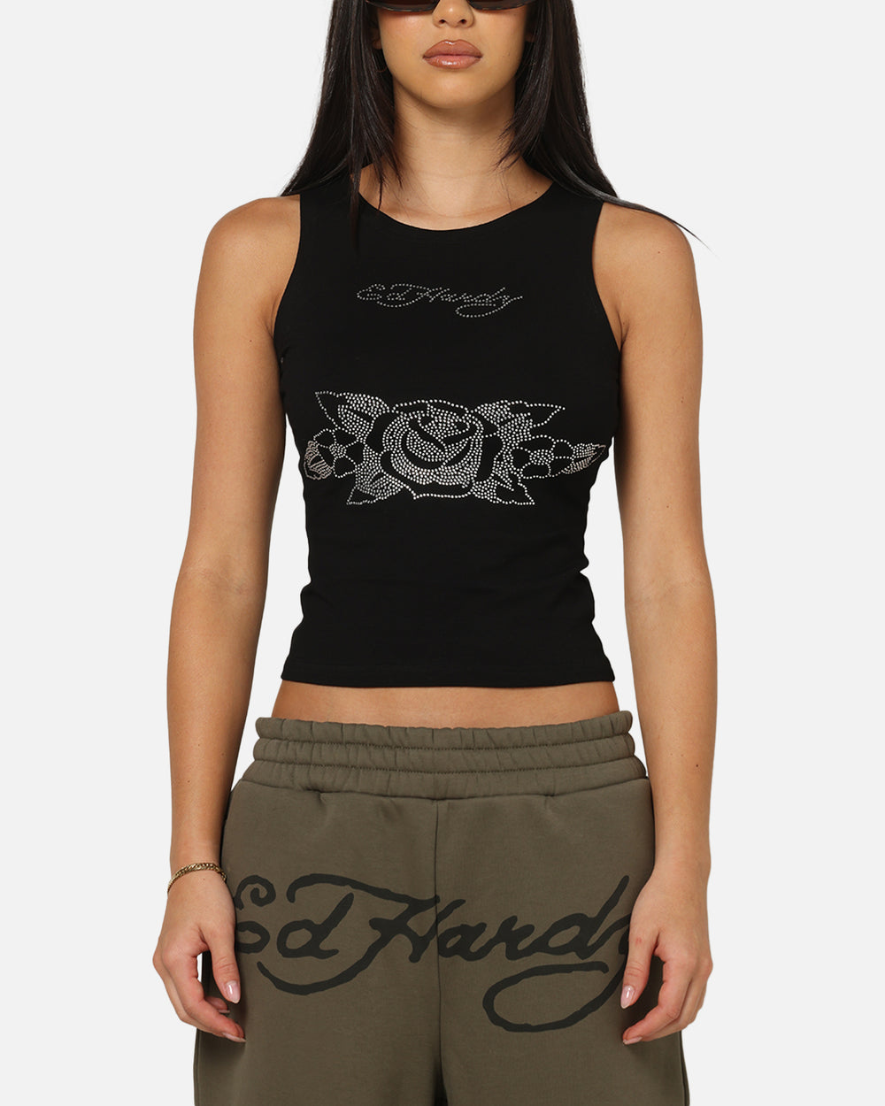 Women's Rhinestone Rose Tank
