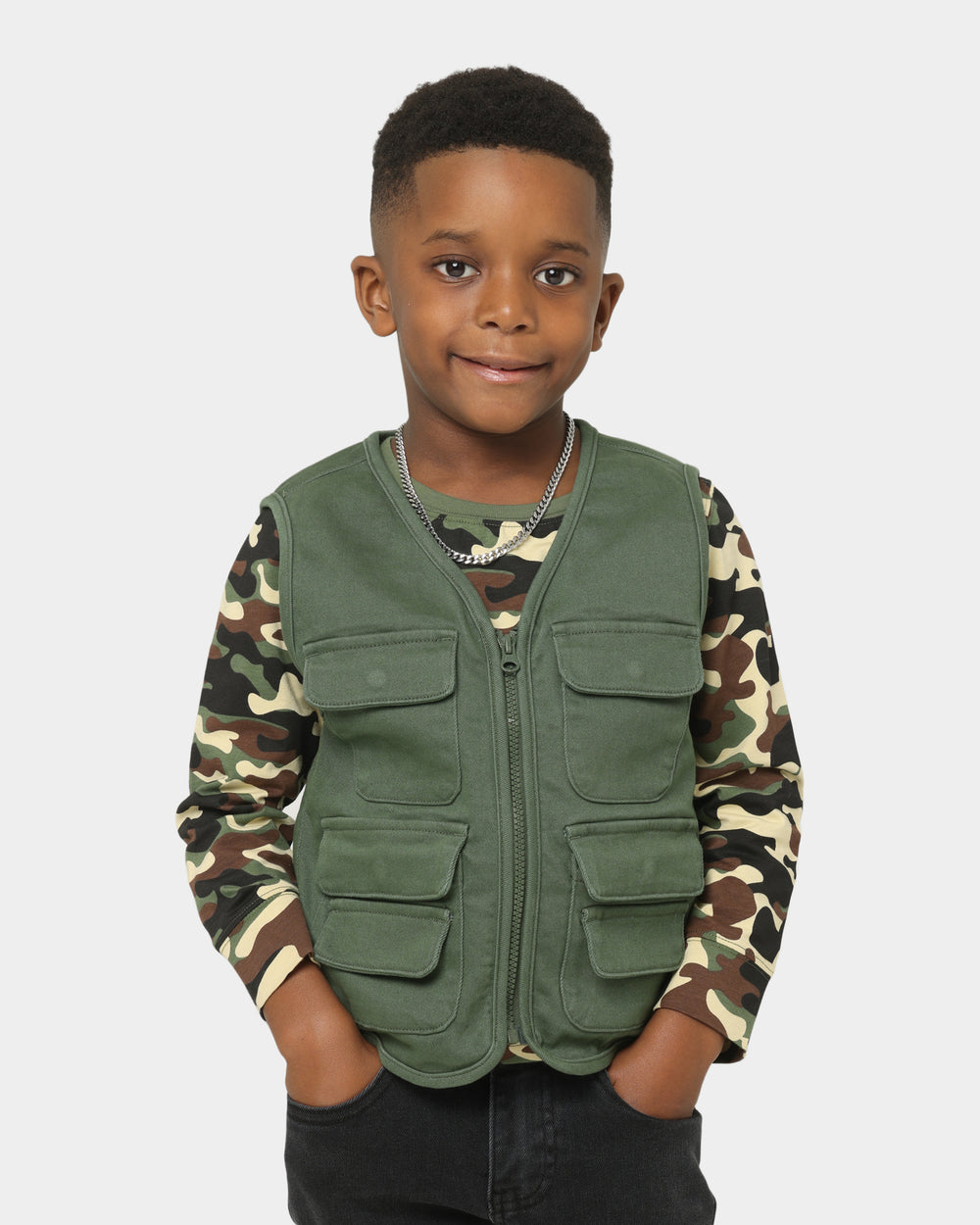 For a stylish fit for your little one, the Kid's Mini Military Vest is the way to go. With a utility-style four-pocket design and premium quality construction. Featuring an embroidered logo on the back.