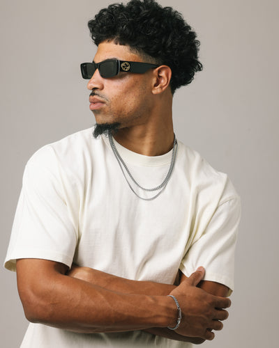 - Large GG logo at temples