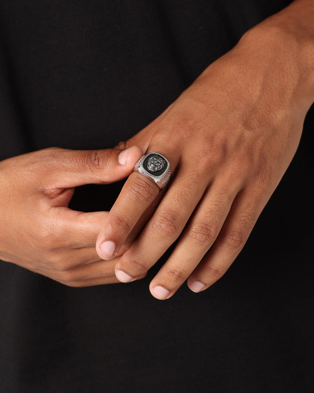 Add a touch of luxury with the Lion King Ring. The Lion head design featured is anything but temporary on a premium piece. Crafted with surgical grade stainless steel and a silver-tone polished finish to put a spotlight on your 'fit, this piece is the perfect statement on its own or layered.