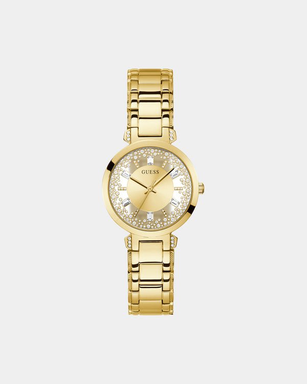 Add a little glitz and glamour to your look with this classic, yet sparkly, timepiece from Guess. With a gold base and crystal detailing, you'll look a million bucks. Combining luxury with practicality this watch also has water resistance and can be dressed up or down. Cop yours today at Culture Kings!