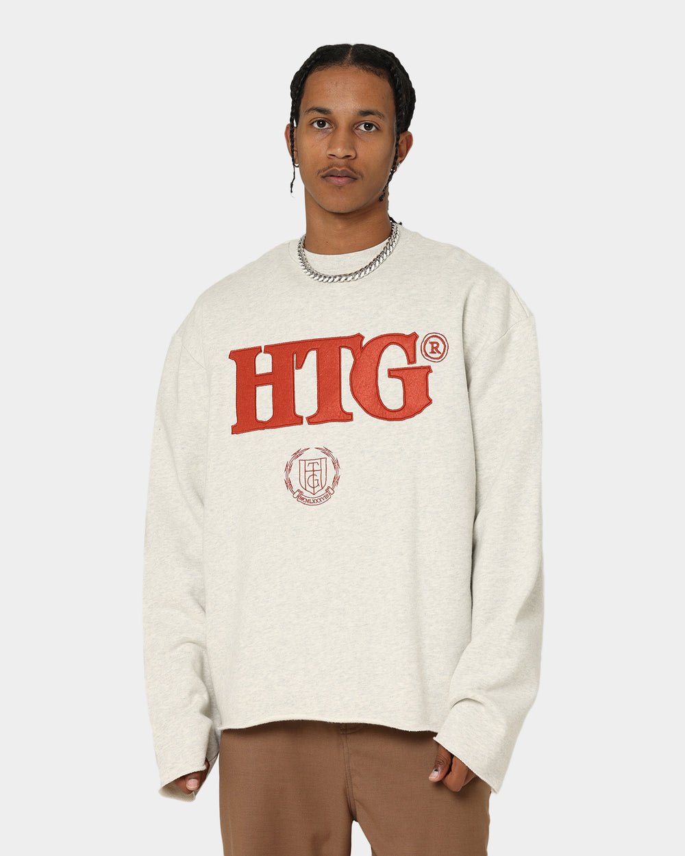 Honour your wardrobe with the latest drop from Honor The Gift. Bringing nostalgia with them, the Studio Crewneck features buttery-soft french terry cotton that'll elevate your street fit. Topped with a heavy felt graphic application, an oversized box fit, and rolled raw hems, you can't go wrong.