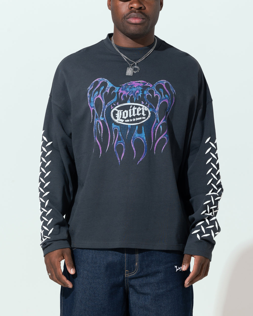 Show off your true self in the Repressed Box Long Sleeve T-Shirt. Loiter is all about making a statement and this tee is no different, with puff print graphics at the front and printed graphics at the back. The box fit paired with dropped shoulders and longer sleeves gives you the ultimate look. Cop yours today at Culture Kings.