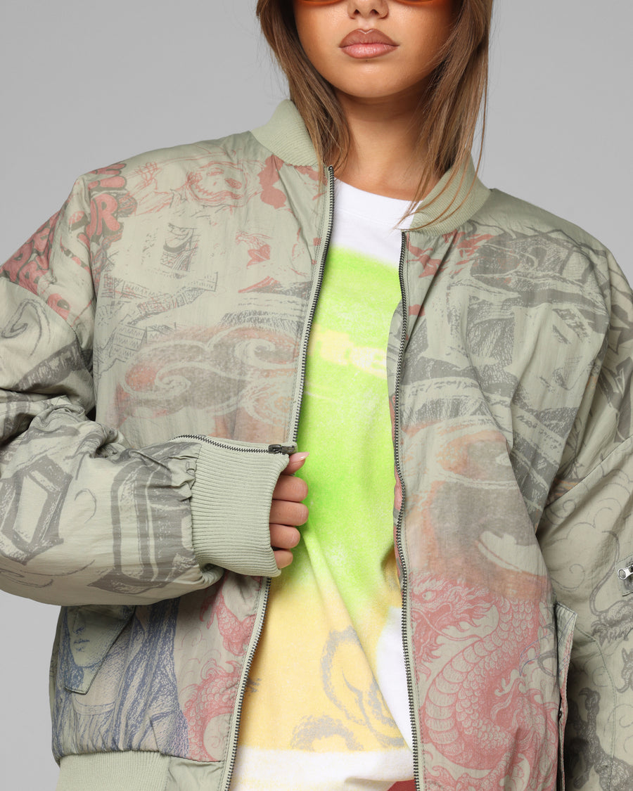 Bring all the effortless cool vibes to your 'fits with the Spray Bomber Jacket by Loiter. This jacket is just what you need to complete your 'fit of the day with printed graphics, contrast quilted lining with a full zip close for an elevated look and finished off with dropped shoulders for a laidback look. How could you say no to this jacket? Cop it today at Culture Kings before stock runs out.