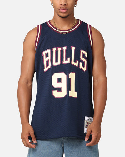 For all the ballers. The Chicago Bulls Dennis Rodman 'Acai' 1995 Swing Jersey is made with breathable polyester mesh with side vents to keep you cool. It's lined with anti-irritation ribbed trim at neckline and armholes for added comfort. Finished with player and team graphics and the NBA patch on the left shoulder for an on-court look.