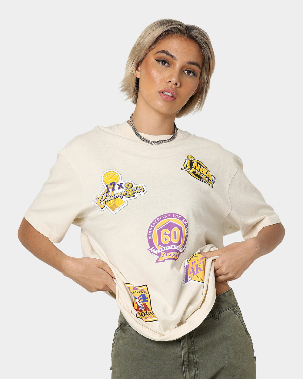 Multi logo prints, premium cotton constructions, and the perfect blend of streetwear and sports. The Los Angeles Lakers Flight T-Shirt has it all. For a look like no other, you'll wanna cop this Mitchell & Ness tee.