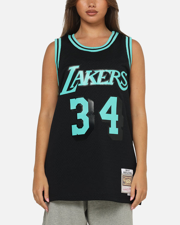 For all the ballers. The Los Angeles Lakers Shaquille O'Neal 'Cool Blue' Swing Jersey is made with breathable lightweight mesh with side vents to keep you cool. It's lined with anti-irritation ribbed trim at neckline and armholes for added comfort. Finished with player and team graphics and the NBA patch on the left shoulder for an on-court look.