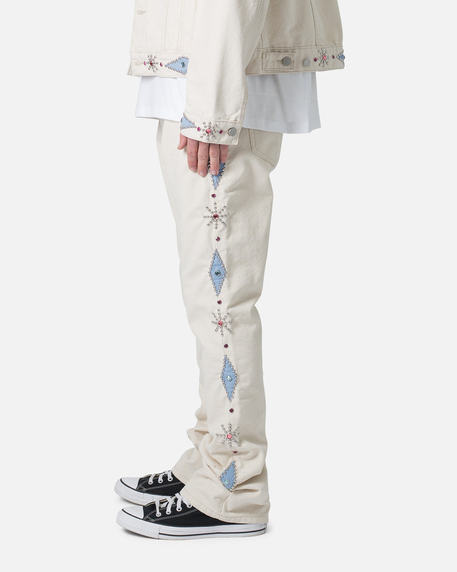 Step up your jeans game with the B379 Studded Flare Denim by MNML. They are designed with a B fit, which is relaxed through the thigh and features a slight flare at the leg opening and is constructed from a natural cotton colored denim, and finished with contrasting studding detail at the outseam and around the pockets. Cop yours today at Culture Kings.