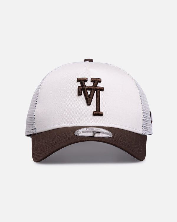 The New Era 9FORTY® A-Frame™ Trucker is an adjustable snapback style that merges the front two crown panels into one, creating a high-profile pinched shape.