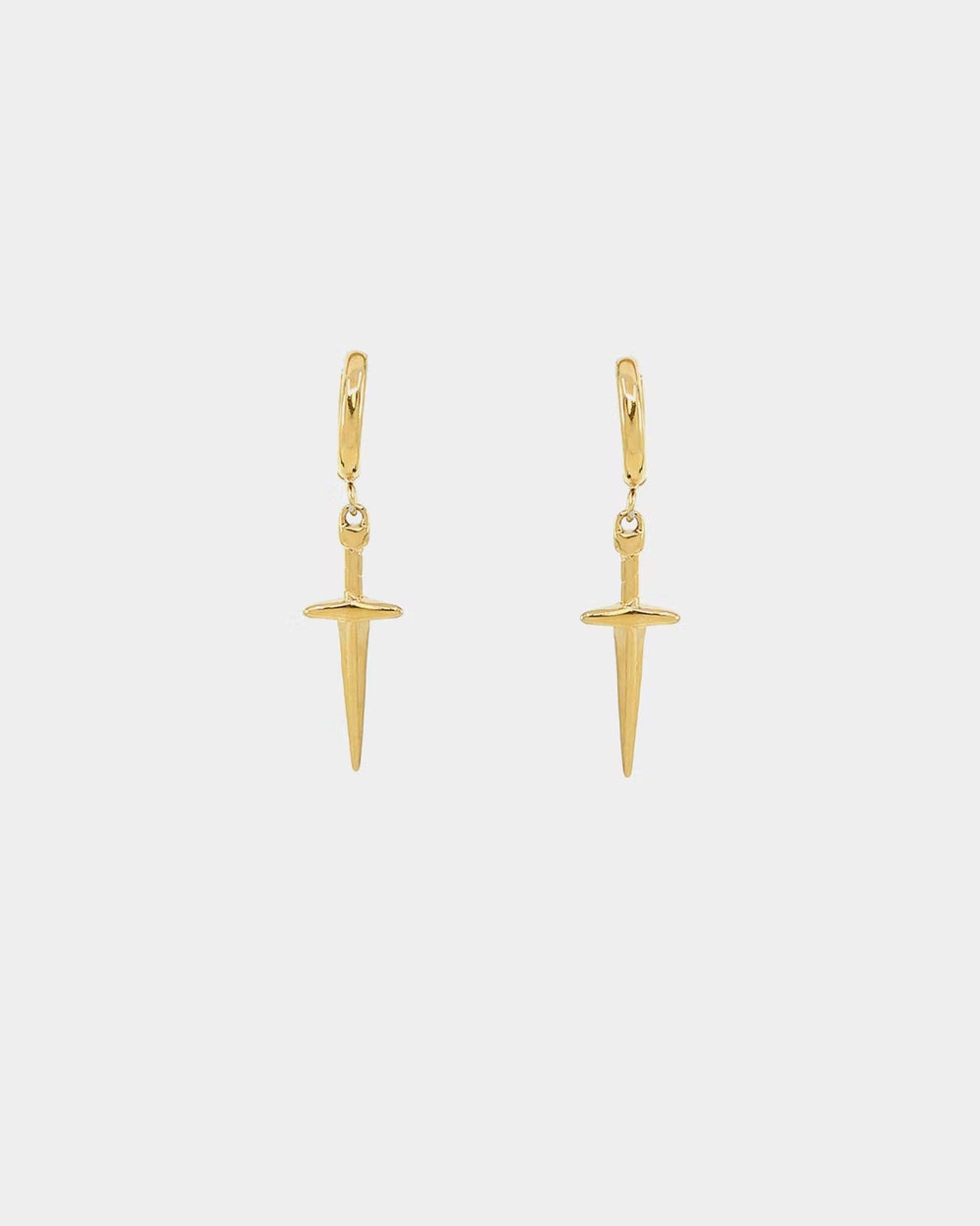 NXS is bringing some edge to your fashion game with these Dagger Earrings. With a dangling dagger pendant, and a huggie closure for the ultimate secure fit. An eye-drawing gold plating on lightweight stainless steel makes these your go-to accessory for that extra fire. Cop yours today!