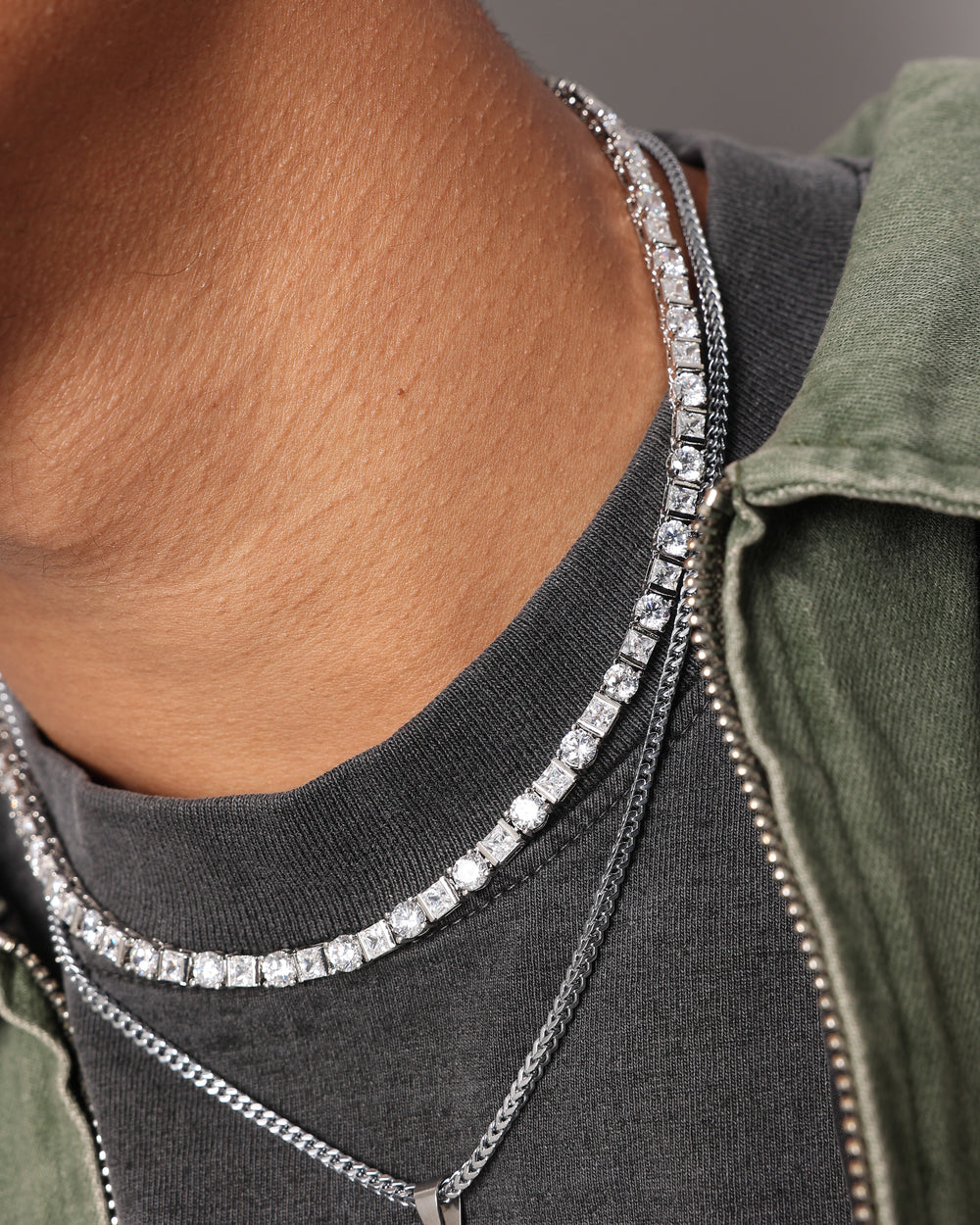 Have your wrist looking like a snow cone with the icy Jesse Duo Stone Chain by NXS. This dripped out chain features alternating 5mm square cut and 5mm round cut stones for an eye-catching look and white gold plated stainless steel base for extra durability. You'll be reaching for this piece everyday, cop it today at Culture Kings.