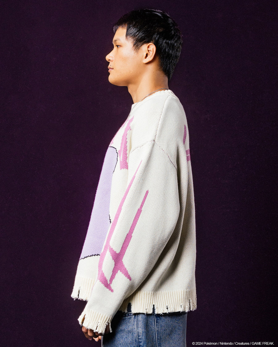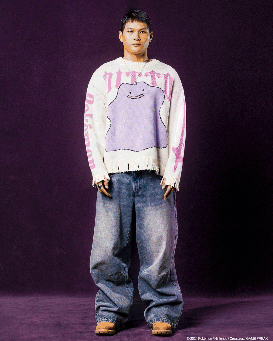 Get a look that you'll love while repping one of your favourite Pokémon with the Pokémon By Loiter collection. This sweater stands out with knitted graphics showcasing Ditto, set against an irresistibly soft and cosy construction. Complete with distressed edges and ribbed trims, this sweater not only ensures comfort but also delivers an elevated look that you'll love. Get in quick and catch yours today before it's too late!