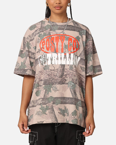 The Post Malone Posty Co Camo T-Shirt is a must-have in your collection. With a printed graphic and an all-over camouflage print, this piece has a looser silhouette with dropped shoulders and twin-needle stitching for a laid-back look and feel. Made with premium construction, it's the tee to rep in. Cop yours today.