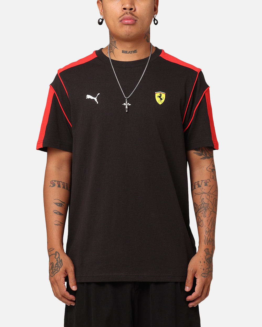 The iconic Puma T7 T-shirt has been given a Scuderia Ferrari makeover, complete with a 3D Ferrari shield logo and track-inspired piping on the shoulders. This is a must-have piece for any true fan, race into Culture Kings and cop yours today.