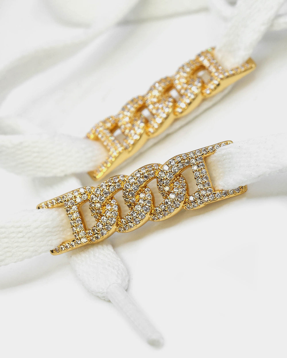 Keen to try this subtle yet chic sneaker trend? Raising Hell has you covered this season with their new collection of Iced Cuban Shoe Charms available now. Featuring a high-quality gold coating on a pair of super sparkly, iced out Cuban link shoe charms - easily thread onto the laces of your favourite kicks for an instant spotlight on your 'fit. The perfect addition to complete your look and raise your sneaker game, be sure to secure yours today, but be quick as these are sure to be a sell-out!
