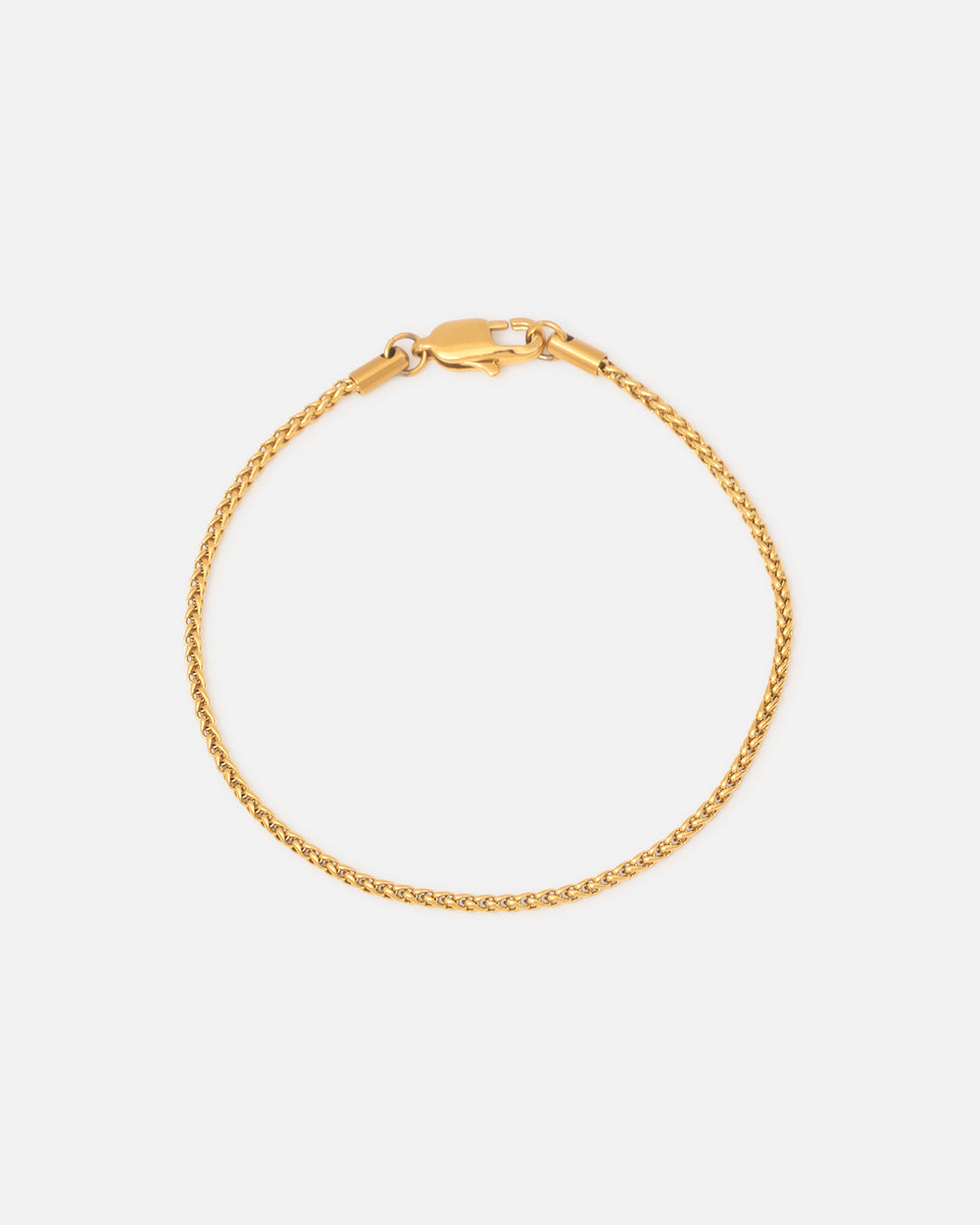 Bring a subtle flex to your 'fits with the 2mm Palm Chain Bracelet by Saint Morta. Crafted from 18k gold plated with a stainless base and an engraved log, this piece looks worn in for a standout look that can't be beat. This is a must-have piece, grab yours today before it's too late.