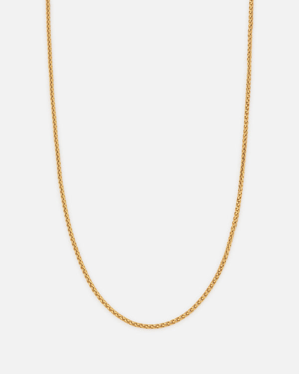 The Saint Morta 2mm Palm Chain is the luxe, minimalistic detail you need to finish off any 'fit with a touch of ice. A fine, wheat chain links makes for an intricate addition to your accessories, boosting every look. With a stainless steel base and 18k gold plating for that must-cop vibe. Get your hands on this today.