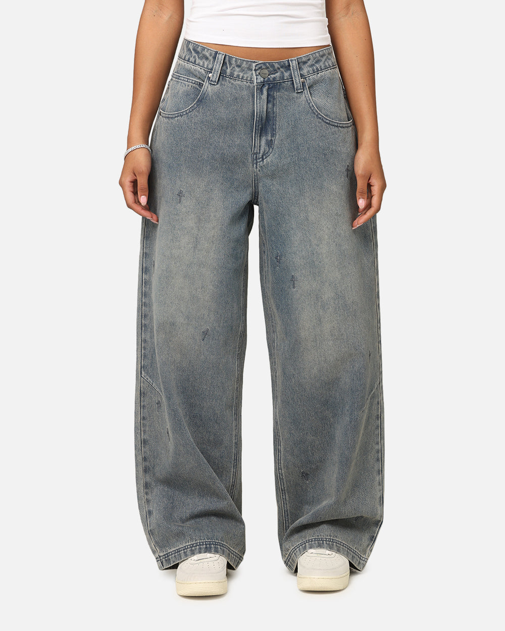 What screams streetwear more than some baggy denim? That's where the Amplus Graveyard Jeans have you covered. A simple yet classic look is created with embroidered graphics on a washed denim and longer length that helps it fall just right. Finished with pleats at the knee and a detachable pendant. Cop yours today.