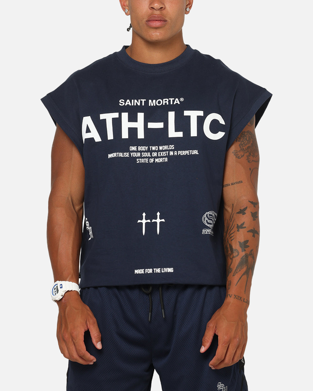 Elevate your everyday looks with this powerful Saint Morta tee. Featuring printed graphics and a ribbed crewneck makes this piece a wardrobe essential. Cop yours today at Culture Kings.