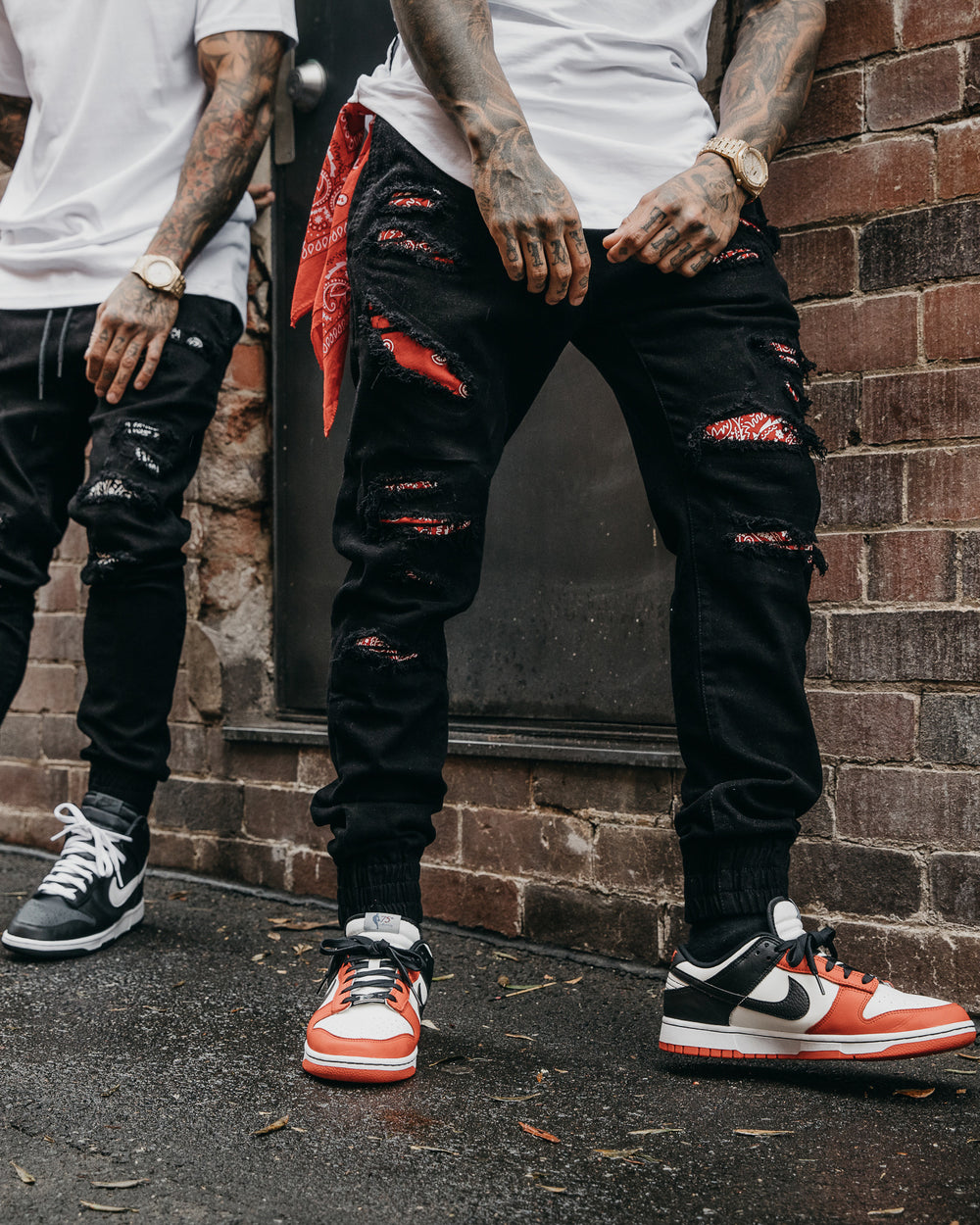 Saint Morta is back with the legendary Bandana Summum Joggers, made to turn heads. These joggers are a must-cop with the heavy distressing through the front of both legs that exposes the unique bandana print detailing. With premium twin-needle construction and stretch fabric for comfort, you better get in quick to secure a pair!