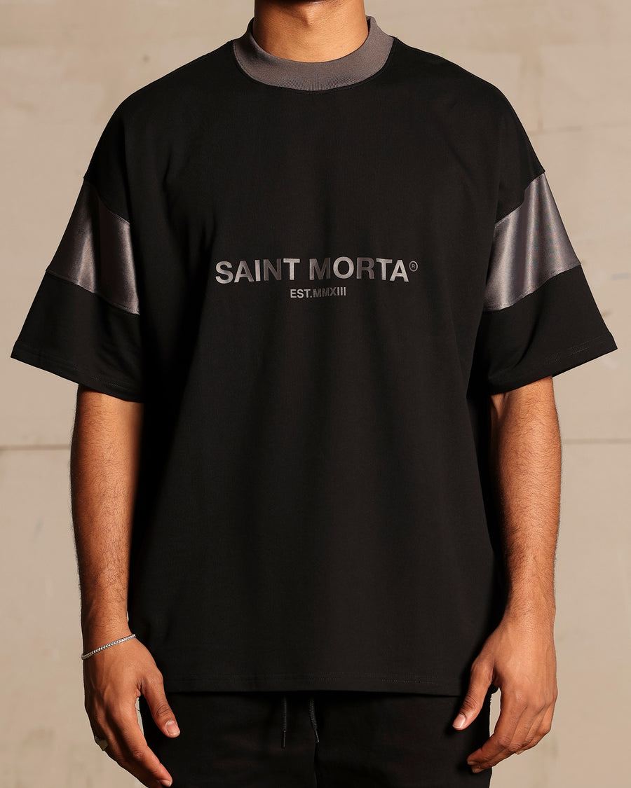 Get a look like no other with the Box Panel T-Shirt. This tee features printed Saint Morta graphics on an ultra comfortable cotton construction with contrast panels and a thick ribbed crewneck making it the ultimate go-to piece. You'll be reaching for it every time, grab yours today while stock lasts.