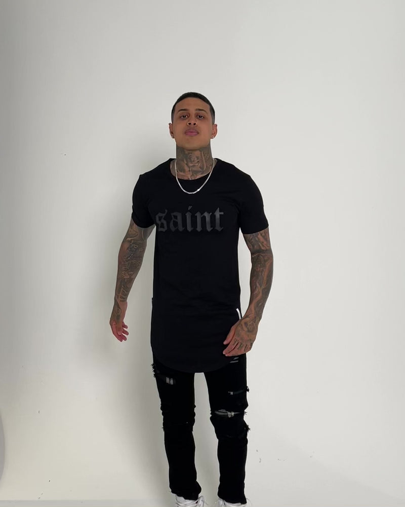 The Cambronne El Duplo Short Sleeve T-Shirt from Saint Morta features a flattering curved hemline and vegan leather patchwork to the front. Finished with a ribbed crewneck and twin needle stitching.