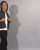 Model Junior normally wears size M top and size M/32 bottoms