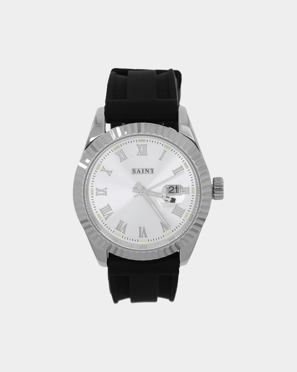 Elevate your drip with the Felix Silica Watch from Saint Morta. A sleek design to finish off any look, this timepiece features a durable silicone band and classic roman numeral time markers, bringing a luxe touch to your accessories. A folding deployment clasp keeps this secured to you. Get your hands on this today and step out in style.