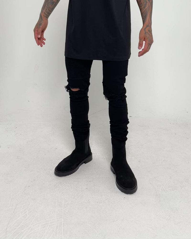 The Index Distressed Biker Jean from Saint Morta is here. Featuring, heavy distressing on the front of the legs and minimal stretch, these skinny-fit jeans are at the top of their class. Other features include ribbed biker panels and a 5-pocket design. For style and comfort, look no further than Saint Morta.
