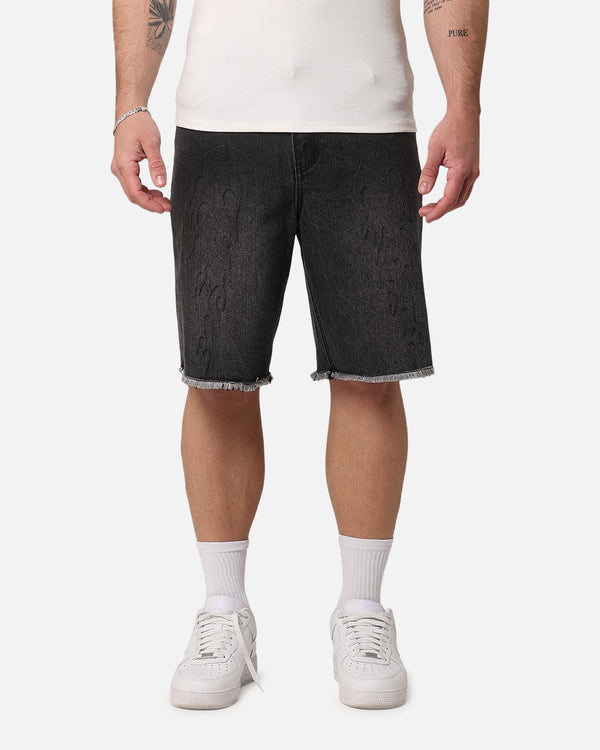 Have all eyes on you in the Inferno Baggy Denim Shorts. Featuring embossed graphics paired with a detachable metal pendant and raw hem for a textured look that gives these shorts a strong visual impact. The rigid washed denim construction lets you know that this style was made to last. Don't sleep on this pair, cop it today.
