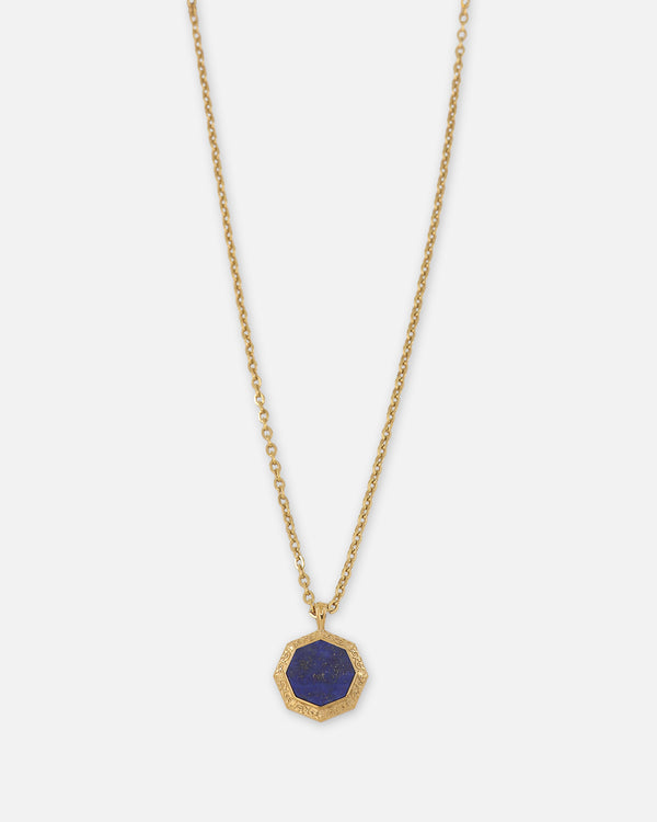 Saint Morta is bringing the vibes to your 'fit with the Lapis Octagon Pendant Chain. 18k gold-plated with a stainless steel base and engraved details with a blue gem pendant and engraved details on a diamond curb link chain make this a piece of hardware worth copping. Get your hands on this today at Culture Kings.