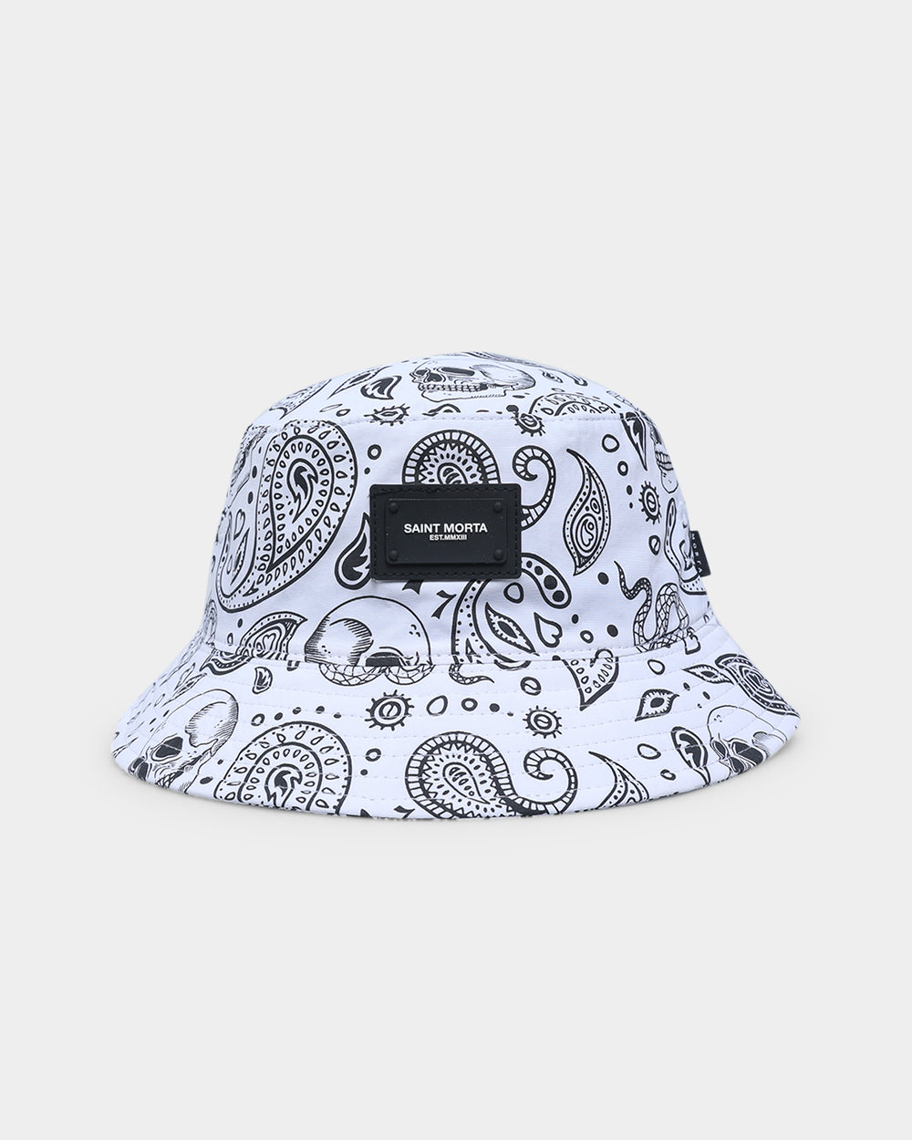 Cop the heat with Saint Morta's Paisley Skulls Bucket Hat. With an eye-catching all-over paisley print, Saint Morta rubber logo badge on the crown, and eyelet ventilation to keep things cool, this bucket hat will take your look to a whole-'nother-level.