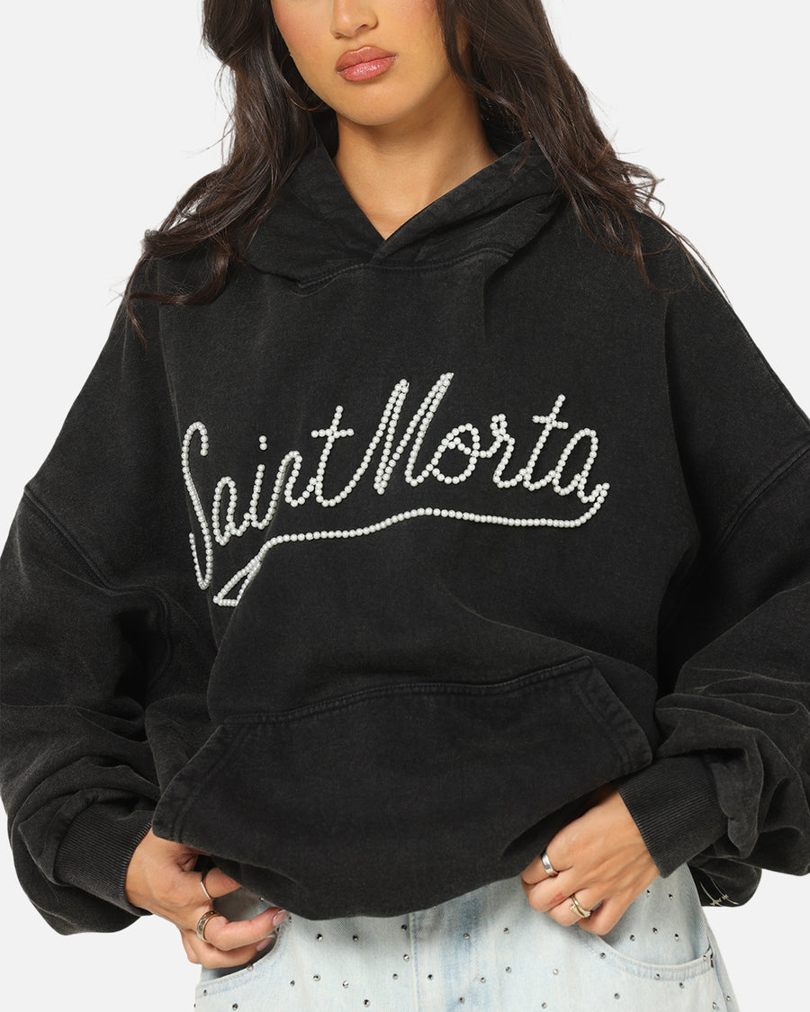 Elevate your everyday looks with this powerful Saint Morta hoodie. Pearl details, dropped shoulders and ribbed trims makes this piece a wardrobe essential that you won't want to go a day without. Be sure to secure yours today while stock lasts.