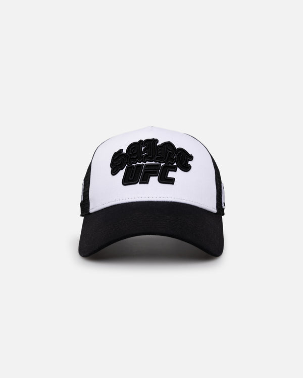 Get a look that hits as hard as the pros with the Saint Morta X UFC Champions Trucker Snapback. This snapback takes a classic high-profile and pre-curved brim to the next level with embroidered graphics and mesh back panels for a fire finish to your 'fits. Cop it today for an outfit topper that is sure to finish your look.