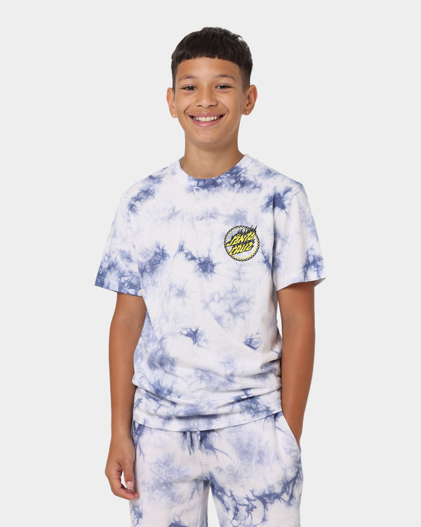 Have your kiddo looking straight fire in the latest Santa Cruz drop to hit Culture Kings! The Kids' Checked Out Flamed Dot Front T-Shirt features a premium cotton construction with a ribbed crewneck and twin needle stitching, built to endure the adventures that come with growing up. With an all-over tie dye print and printed brand graphics, this tee is a standout in any young wardrobe. Cop yours today!