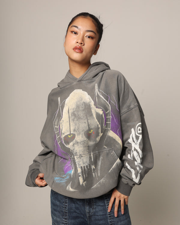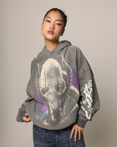 Do not underestimate the power of the dark side with the General Grievous Hoodie. Proudly displaying custom printed graphics of the infamous character, with a vintage wash for a lived in and loved look and finished off with ribbed trims to keep you warmer for longer on your intergalactic adventures. Get in quick and secure yours today, only at Culture Kings.