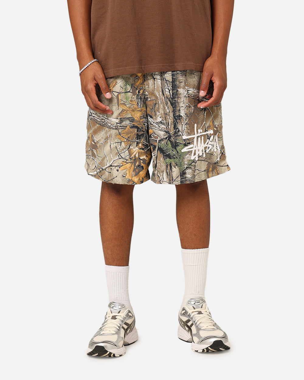 Have all eyes on you in the Real Tree Nylon Shorts by Stüssy. The all over print and printed brand graphics make these shorts a must-have piece. The elasticated waist ensures you get the perfect fit every time for maximum comfort. Get your hands on a pair today at Culture Kings.