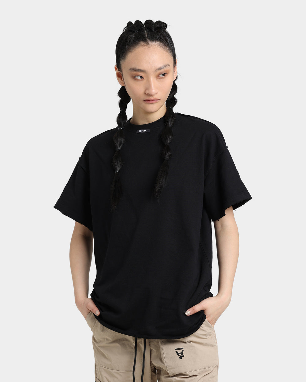Layer it with a long sleeve or keep it simple on its own, this minimalistic tee is the perfect daily addition for any closet. Featuring exposed overlock detailing and raw edges for a distressed look, this is offset with subtle black branding on the back and sides to ensure a clean finish.