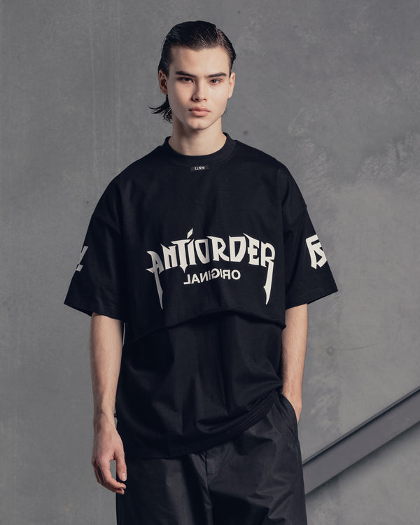 The Shibuya Markets Avant Boxy T-Shirt is taking fashion to the next level. The double layering with a raw hem on the cropped upper layer makes for a standout piece like no other, topped off with fire printed graphics and dropped shoulders. This tee is a must-have, get your hands on it today.