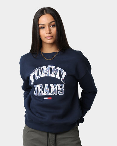 A stand out crewneck, the Women's Boxy Argyle Crewneck is about mixing it up. The check argyle logo appliqué gives a fresh take on the Tommy Jeans logo, with a box fit and cotton blend adding elements of comfort.
