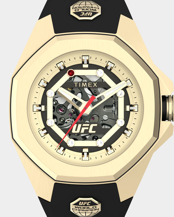 Show off your skills and your style with the UFC Pro 45mm World Champion Edition Watch. This timepiece features all the necessities for the ultimate training session. Not only is it powerful with its 100m water resistance but it also adds a touch of luxury with a synthetic ruby marking the 11th hour on the dial which is inspired by the design of the iconic UFC Championship belt. Cop yours at Culture Kings!