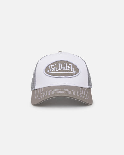 The Grey & White Trucker Snapback by Von Dutch features the classic logo patch on front, breathable mesh rear, and an adjustable snapback panel. Cop one of the most iconic pieces of headwear today at Culture Kings.