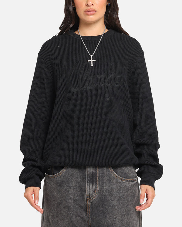 Extra cosy and extra cool. The Script Waffle Knit Sweater by X-Large features embroidered graphics on a knitted construction that will sure to make a statement and ribbed trims to keep you warm all season long. Be sure to cop yours today at Culture Kings.