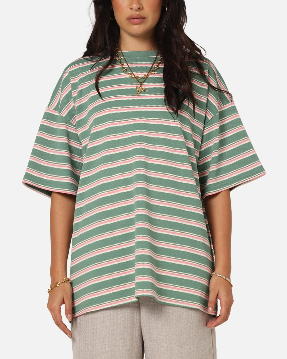XXIII is bringing the streetwear vibes with the Standard Stripe T-Shirt. Featuring all-over stripes, this tee takes it to the next level with a dropped shoulder silhouette for that relaxed style and finished with twin needle stitching for extra reinforcement. Cop it today at Culture Kings.